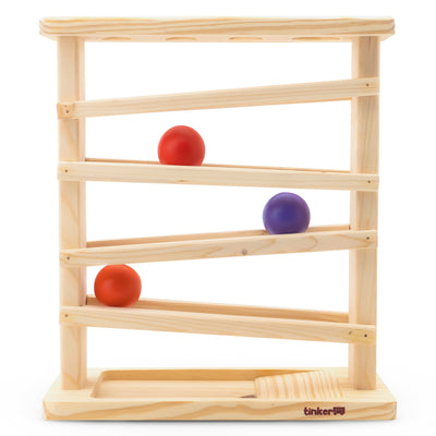 Transform playtime into learning time with our captivating Ball Tracker! This beautifully crafted Montessori-style toy is made with sloping strips of varying thicknesses to ensure the ball moves smoothly and accurately. The base is inclined so that the balls roll down easily, and the rounded edges keep babies safe while they play. The tray keeps the balls in place, making it both fun and secure for your baby.